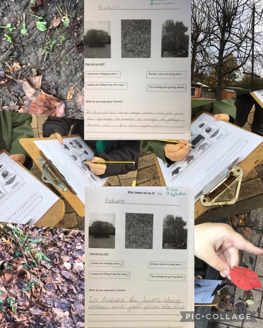 This week the children had fun on a welly walk around the school grounds, searching for evidence of Autumn. We discussed the changes they could see such as, the ground being wet and soggy after the rain. Lots of leaves had turned red and brown and fallen off of the trees. They also identified that the days are shorter as it gets dark earlier and that it has started to get colder.