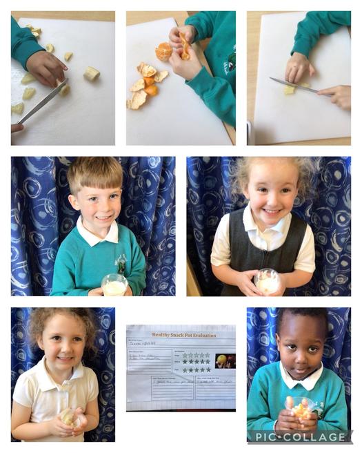 Everyone evaluated their fruit pot after tasting it. Lots of children said that they needed more practice to develop their cutting skills and others suggested different fruits they would use next time they made a fruit pot.