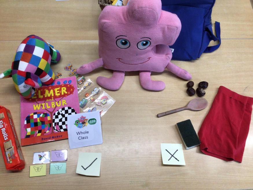 During our 'Jigsaw' PSHE session this week we reminded ourselves of the Hazel Wood School Charter. Jigsaw Jo encouraged us to think about rewards and consequences of following, or not following the charter. He added some objects into his bag that could be used as a reward in and out of school and we discussed whether they were things that we would like or not.