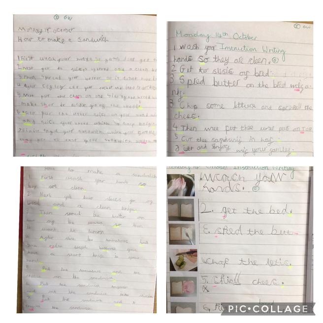 As we independently made our sandwiches last week and are now experts, this week, we have used our independence skills to write instructions for how to make a sandwich. All the adults have been extremely proud of us and our ability to recall all the key steps that are needed to make a delicious sandwich! Before writing our instructions, we looked at the key features for what a good set of instructions look like so our own instructions were very informative.