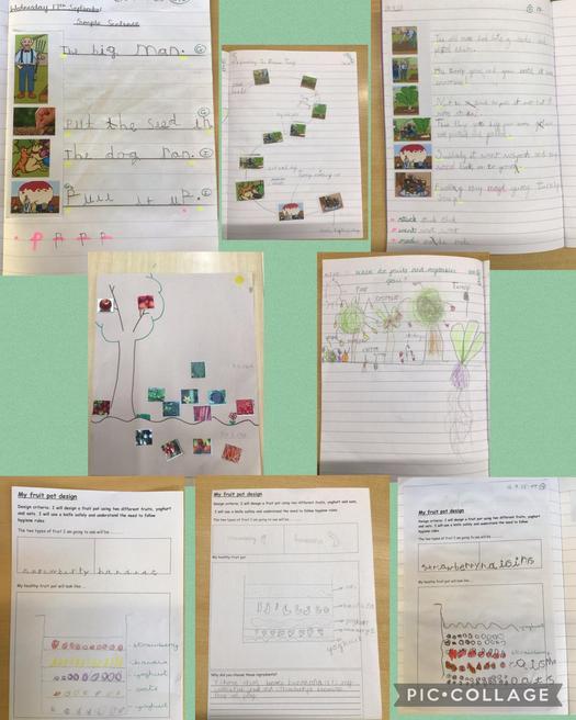 Key Stage 1 have had a very busy week. After sequencing pictures from 'The Enormous Turnip', they retold the story to their friends. The children then wrote their own versions, lots focused on using capital letters and full stops, others extended their sentences with the conjunction 'and', some added more detail and used adjectives.