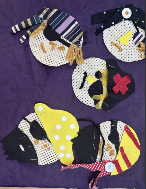 Each child began by sketching their own pirate-themed design, thinking carefully about colours, shapes, and symbols that would make their badge stand out. They then used a variety of fabric, buttons, and wool to build their creations, learning how to safely use tools like needles and staplers with adult guidance.