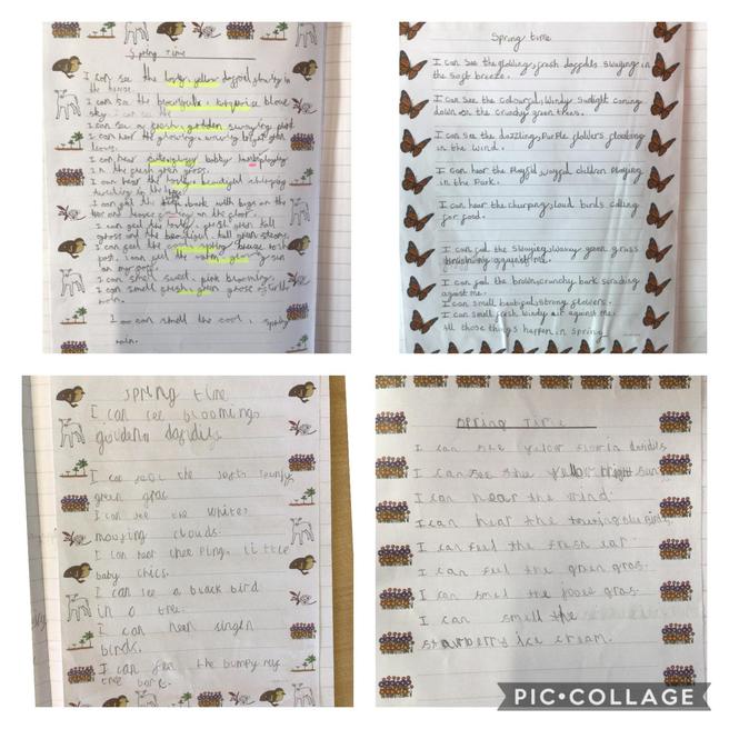 This week the children have been working really hard to use their descriptive language to write about Spring using our senses. We have been exploring exciting vocabulary and adjectives to write expanded noun phrases to make our writing more exciting and engaging. Our teachers were very proud of our resilience and hard work!