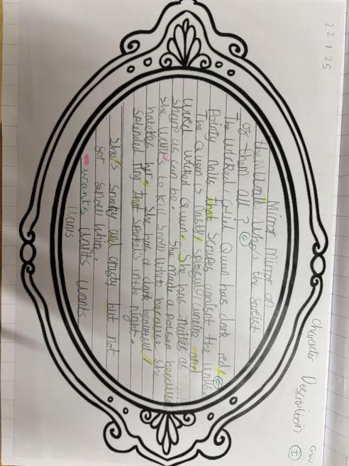 This week in KS1, we have been learning all about the Evil Queen from our current topic of Snow White. We have all created a character description for her describing what she looks like and her personality. Some of our descriptions were incredible with really terrifying language allowing the reader to use their imagination to think about what she looks like. We have been using expanded noun phrases and our non-negotiables - of course! Here are some examples of what we have written. "Her filthy fingers are as long as lion claws". "Her ruby lips are as red as blood and her hair is as black as the midnight sky." Well Done KS1!