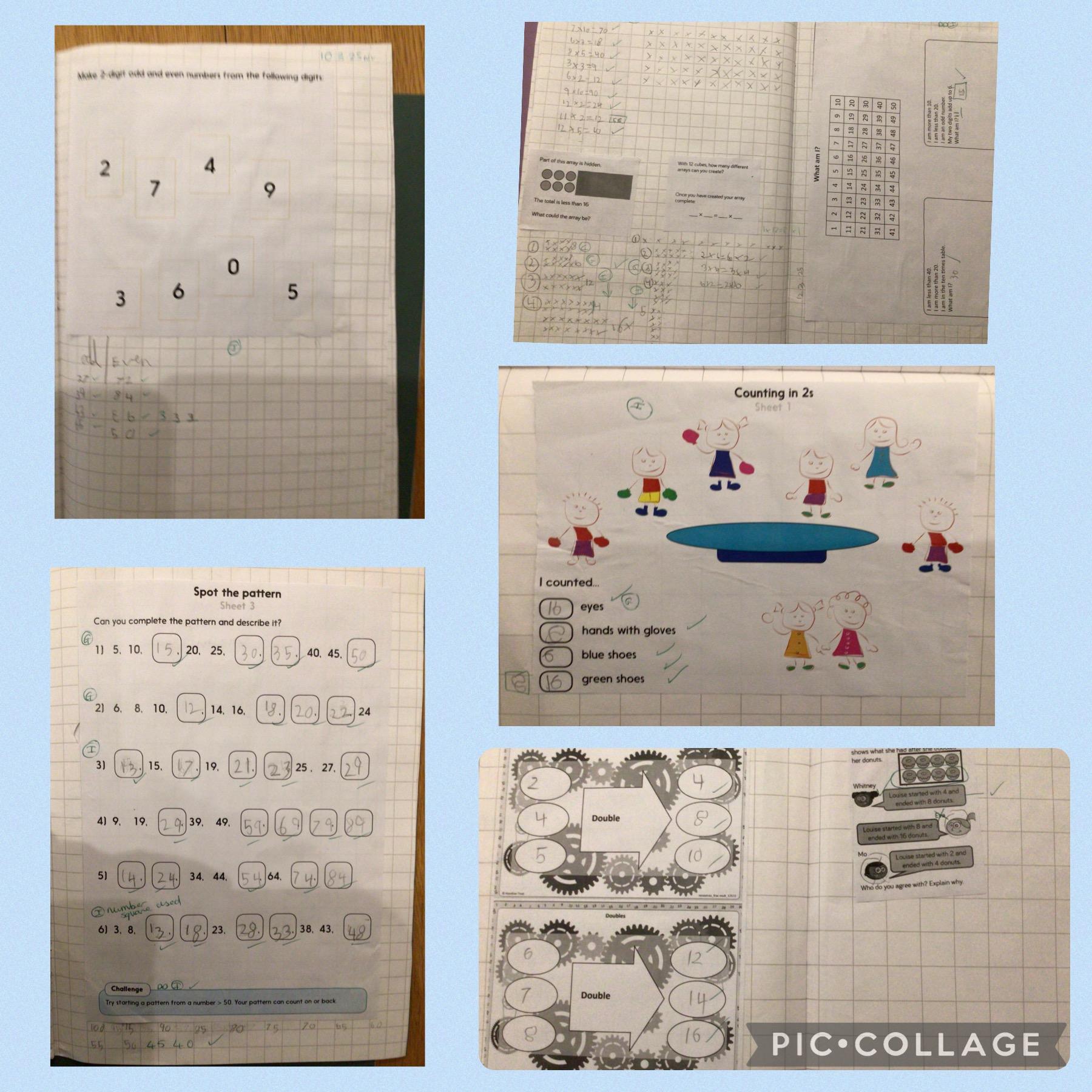 During Mathematics the children have been looking at even and odd numbers, doubling numbers under 20 and solving multiplication problems/questions.